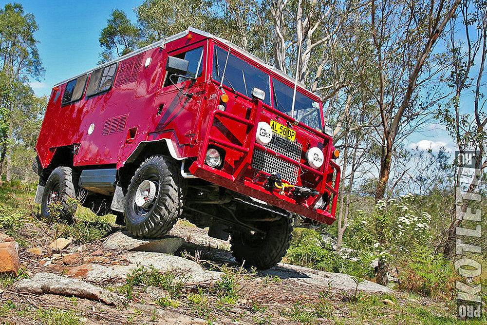 Рама и мосты у 101 оригинальные, помощнее чем у Defender. С завода двигатель был от первых Range Rover - бензиновая восьмерка на 3,5 л. Здесь же прожорливый мотор заменен на экономичный четырехцилиндровый дизель с интеркулером от грузовичка Mazda, агрегатированный с раздаткой Range Rover LT95 со скоростным рядом и механической четырехступенчатой коробкой передач. После таких переделок автомобиль стал намного экономичнее на бездорожье, но при этом позволяет разогнаться до 100 км/ч.