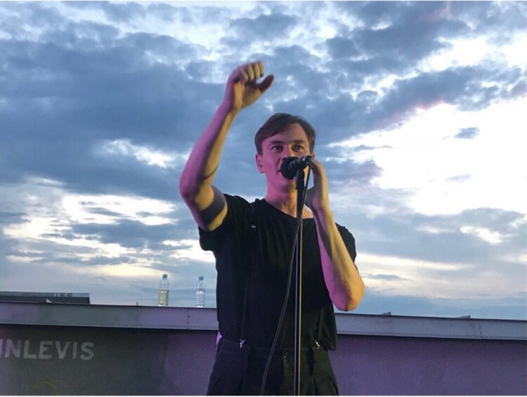 Романтический музыкальный вечер на крыше в первый день самого летнего месяца в году устроила своим поклонникам модная московская инди-поп группа OQJAV. И хотя по всем прогнозам в этот день обещали ливень и грозу, ровно за пять минут до начала концерта дождь закончился и аппарат не пришлось переносить в помещение. «Во всем виновата луна»,- заявил в начале своего выступления лидер коллектива, Вадик Королев. Самые преданные, хорошо знаyкомые с творчеством группы, поклонники проскандировали продолжение строчки из песни «Хаски»: «Так говорят». И это единение сразу настроило на нужную волну всех участников торжества, и, кажется, даже немного разогнало тучи. «Торжества», потому что место было выбрано и впрямь тожественное — не так давно открывшаяся для концертов, крыша павильона «Рабочий и Колхозница» на ВДНХ. Романтично. И немного по-ностальгически.