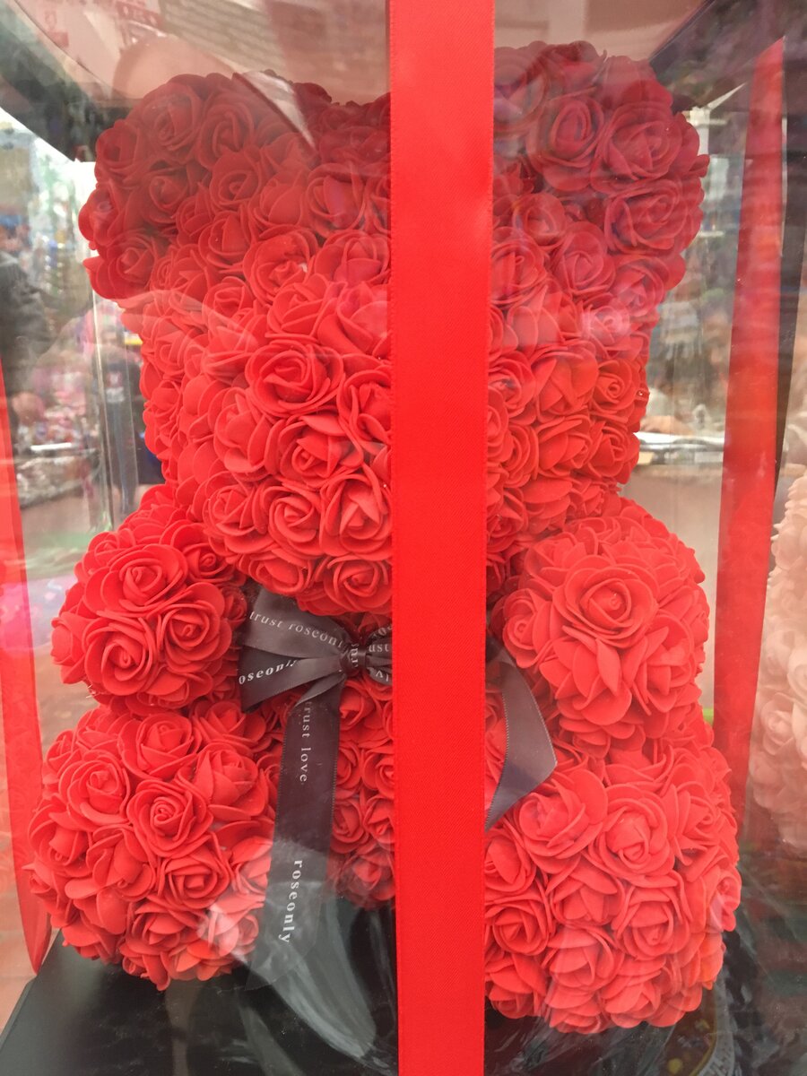- Мишка из искусственных роз. На ощупь напоминает коврик для йоги. Материал цветков похожий. Покупают преимущественно для фото в подарок девушкам. Детям брать не советую. Разломают за 5 минут.