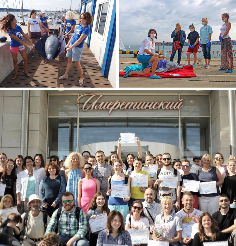 Курсы прошли в Сочи уже дважды. Первый курс был вводный и пришло около 100 человек. Мы были приятно удивлены таким количеством людей - это говорит о том, что жители Сочи очень прониклись проблемой и хотят изменить ситуацию! Второй курс включал в себя более углублённые знания - наши специалисты готовили людей с медицинским и ветеринарным образованием именно по вопросам оказания ветеринарной помощи пострадавшим диким дельфинам, а также обучали волонтёров необходимым навыкам плавания и ныряния на задержке дыхания.