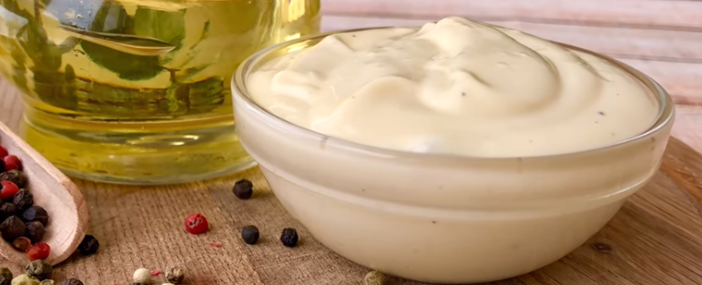 Для приготовления понадобится: растительное масло 150-200 грамм 1 куриное яйцо 1 ч. ложечка сахара половина ч. ложки соли 1 ч. ложечка горчицы перец по вкусу 9% уксус 1 ч. ложечка Способ приготовления: 1. В глубокий стакан выливаем масло и разбиваем яйцо. Обязательно масло и яйцо должны быть комнатной температуры. Если температура будет разная, то ничего не получится! 2. Добавляем соль и сахар 3. Добавляем горчицу, перец и уксус 4. Погружаем блендер так, чтобы желток был именно в кругу блендера и начинаем взбивать. Не вынимаем блендер из стакана, пока не увидим майонез 5. Нужно довести до однородной консистенции, до густого майонеза 6. Вот такой густой майонез получается! Хранить такой майонез можно до 5 дней, больше не стоит! Так что готовьте не большими порциями.
