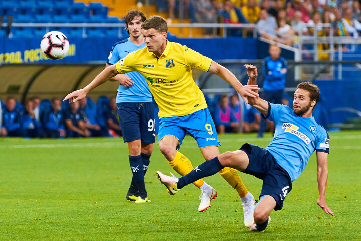 Волжско-донское дерби завершилось поражением желто-синих в заключительном матче в этом году при трех удалениях ИА "Чемпионат-Ростов". 8 декабря, 2018 Стартовый состав "Ростова" претерпел ряд вынужденных замен. Вместо травмированного Алексея Ионова в пару в нападение Бьорну Сигурдарссону с первых минут вышел Элдор Шомуродов. В обороне место Сергея Паршивлюка на фланге занял Арсений Логашов, а в центре обороны вышел Денис Хаджикадунич. Именно ошибка молодого шведа и стала роковой в матче. Уже в дебюте игры Хаджикадунич нарушил правила в своей штрафной, за что Сергей Карасев незамедлительно назначил пенальти. Антон с точки не оставил шансов Песьякову - 0:1. В самом конце первого тайма капитан самарцев Корниленко за симуляцию получил вторую желтую - по сумме красную карточку. Получив численное преимущество, "Ростов" с первых минут второго тайма принялся наседать на ворота Рыжикова,н о страж ворот "Крыльев" был непробиваем. Впрочем однажды и он допустил ошибку - при выносе мяча. Шомуродо