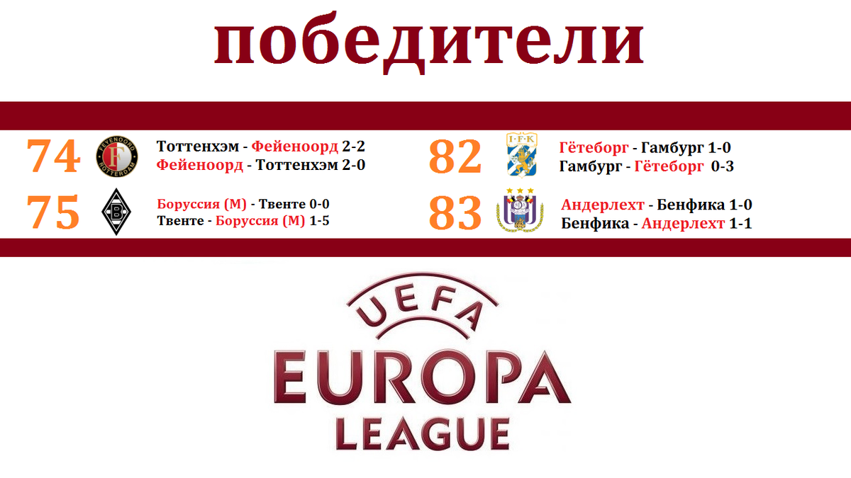 К сравнению в следующем сезоне, когда победил Андерлехт, было забито в среднем 2,79 гола за игру. Бельгийцы обыграли в финале Бенфику 2-1.
