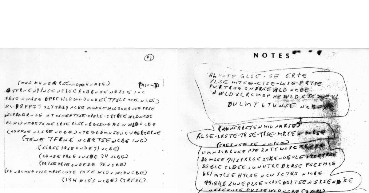 Записки которые до сих пор не могут разгадать лучшие криптологи мира. 30 июня 1999 года один из фермеров возвращавшихся домой по проселочной дороге расположенной недалеко от города Вест Элтон в штате Миссури , обнаружил труп мужчины. Как позже стало известно им оказался некий Рикки Маккормик который являлся жителем Сент Луиса.Из досье можно узнать что Маккормик был безработным, женат не был ,однако у него было четверо детей и заведено несколько уголовных дел. Причина сметри так и не была установлена , полиция утверждала что он умер своей смертью, хотя непонятно как он оказался и что делалв поле в 20 километрах от места проживания, но еще более неожиданный поворот эта история получила через 12 лет после происшествия когда фбр опубликовала информацию о том что в одежде мертвеца были найдены странный записки не поддающиеся расшифровке , по мнению фбр в этих записях могла соджерждаться информация о возможных убийцах Маккормика. Его родственики сообщили что Маккормика с самого детства при