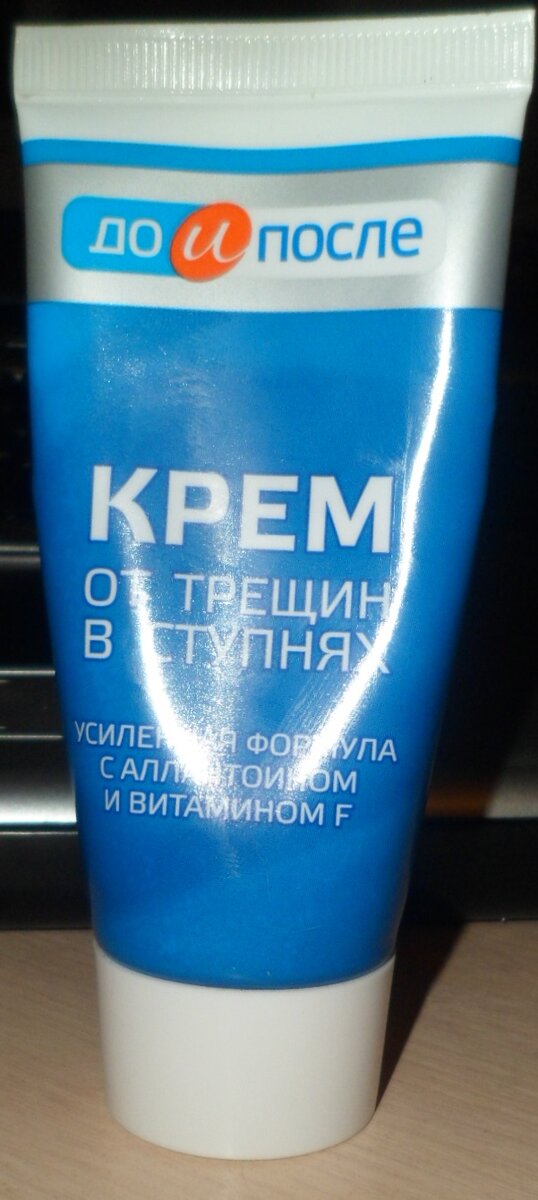 В начале этой зимы на меня впервые в жизни напала беда, а именно появились трещины на пятках. Обнаружив их вечером, и передумав за ночь много мыслей на эту тему, вспомнив рассказы бабушки и мамы о том, как трещины увеличиваются, причиняя при этом такую боль, что становится невозможно ходить, я решила посвятить день поиску средства для борьбы с этой проблемой. Призвав на помощь великий Интернет, я увидела несколько положительных отзывов о креме от трещин в ступнях «До и после». Так же в отзывах указывалось, что данный крем можно найти, в том числе, в магазине ФиксПрайс. Став обладательницей тюбика и принеся его домой, решила изучить, что это такое и как его применять. Итак: объем тюбика – 50 миллилитров. В составе крема заявлены следующие компоненты: Кукурузное масло – компонент, который обладает интенсивным питательным действием. Минеральное масло – это смягчающий и питающий компонент, который предупреждает образование трещин и ран на ступнях. Аллантоин – это активный заживляющий ком