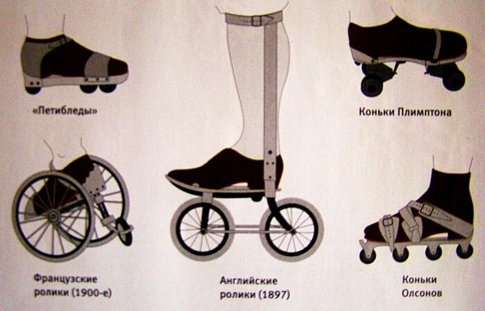 Самое первое упоминание о роликовых коньках относится к 1743 году. А во имя изобретателя и их конструкцию - увы, история не сохранила. Поэтому создателем роликов принято считать Жан-Жозефа Мерлина. Тем более, что его первая демонстрация роликовых коньков закончилась скандалом, который отбил у публики желание кататься на подобных устройствах. В Лондоне на бале-маскараде он катался среди публики трудно управляемой конструкции с маленькими металлическими колёсиками и при этом играл на скрипке. В общем, Мерлин не смог вовремя затормозить и разбил большое и дорогое зеркало, сильно пострадав при этом. Так Мерлин не запатентовал свое изобретение. Первый патент на ролики был получен только в 1819 году в Париже месье Птиблэ. Коньки представляли собой деревянную платформу (подошву), к которой снизу в одну прямую линию (inline) крепились от двух до четырех колес, сделанных из меди, дерева или слоновой кости. Сама платформа прикреплялась к подошве обуви. С этого момента начинается история развития