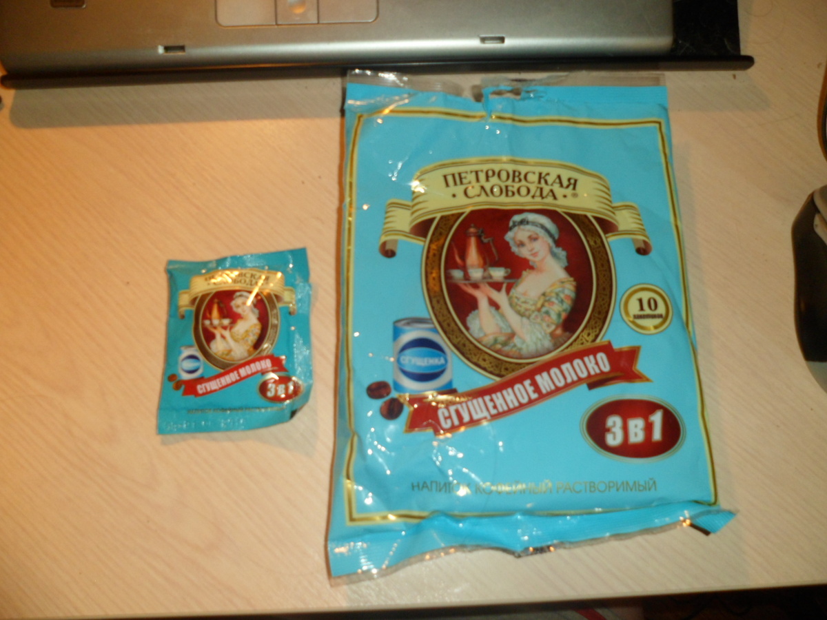 Начну по примеру большинства: обзором товара из FixPrice, а именно напитка кофейного растворимого «Петровская слобода» с ароматом «Сгущенное молоко». Этот кофейный напиток был мною выбран из множества подобных в те далекие года, когда кофе в подобном формате только стало появляться в продаже. Множество вкусов: то же сгущенное молоко, классический, лесной орех, амаретто, крем-брюле, и другие, позволили однозначно записать данный кофейный напиток в «любимчики». Так же, уж не знаю, то ли это маркетинговый ход такой, то ли не все владельцы магазинов понял, что данный товар достаточно неплох, но в магазинах нашего города достаточно редко можно найти данный напиток. Поэтому его обнаружение на полках FixPrice было приятной неожиданностью. Итак, напиток продается в упаковке по 10 пакетиков. Вес каждого пакетика составляет 18 грамм. Состав, в принципе, соответствует наименованию: сахар, заменитель сливок, кофе натуральный растворимый, ароматизатор «сгущенное молоко». Из подозрительных компонен