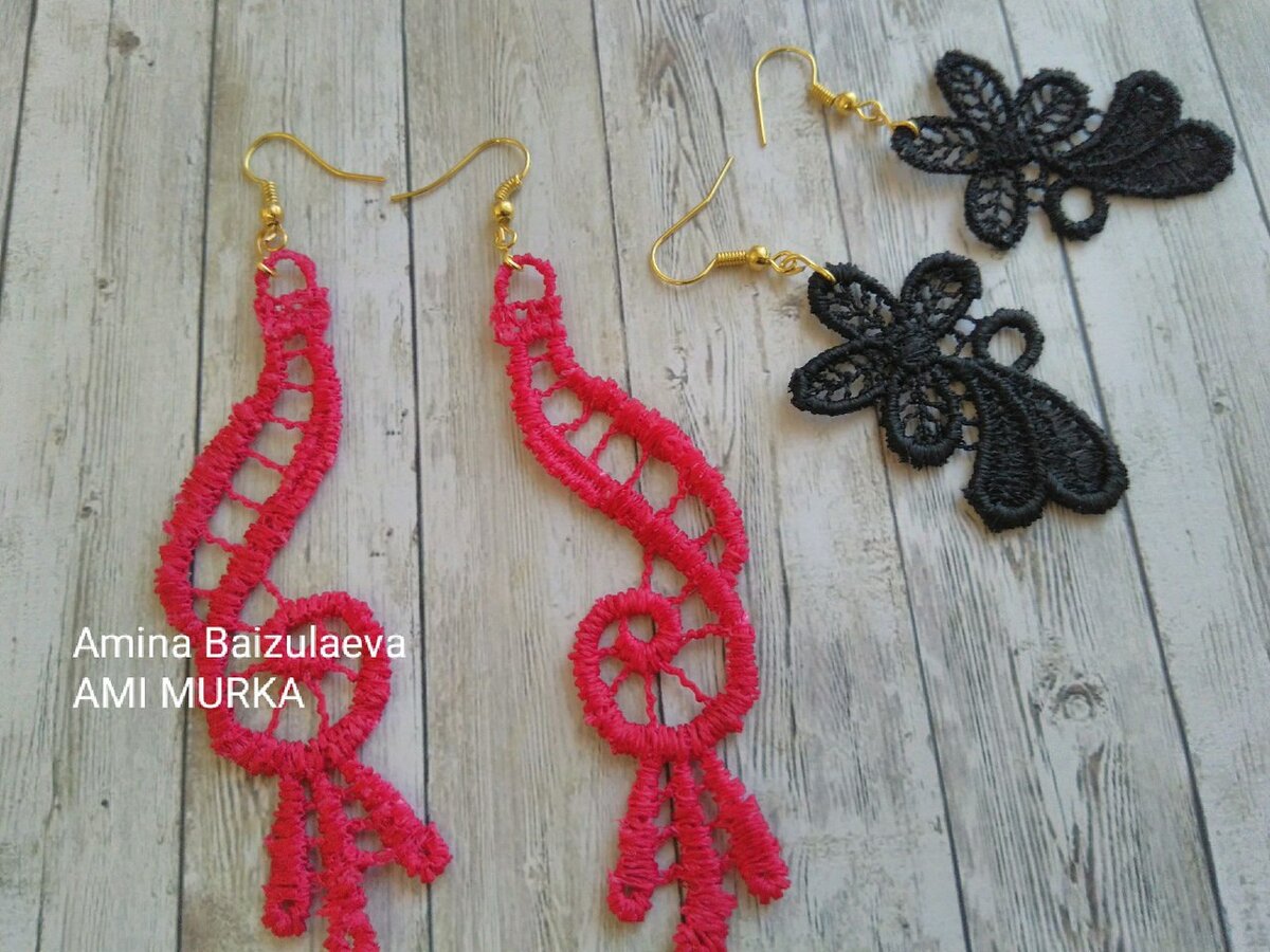 Такие сережки прекрасно дополнят, как классический строгий look, так и свободный образ в стиле casual. Сережки смотрятся очень необычно и обязательно привлекут внимание окружающих. Все, что вам понадобится: Первым делом нужно подобрать кружево. Рисунок должен быть четким, а сама вышивка иметь объемные, широкие границы. Основные элементы кружева соединяются друг с другом тонкими фрагментами. Вот именно от них нам и нужно освободить. Мы выбираем рисунок, и отделяем его от самого кружева. Делаем это аккуратно, чтобы не повредить сам рисунок. Мне повезло, на этом кружеве уже есть крючек для швензы. Он идеально подойдет для этой цели. Далее мы должны в равных пропорциях перемешать клей ПВА с водой. Помещаем в этот раствор наши элементы. Хорошенько выжимаем, чтобы на кружеве не оставалось лишней влаги, которая после высыхания может некрасиво смотреться. Оставляем высыхать на некоторое время. После того, как все высохнет, можно цеплять швензы. На этом кружеве также присутствует небольшой фра