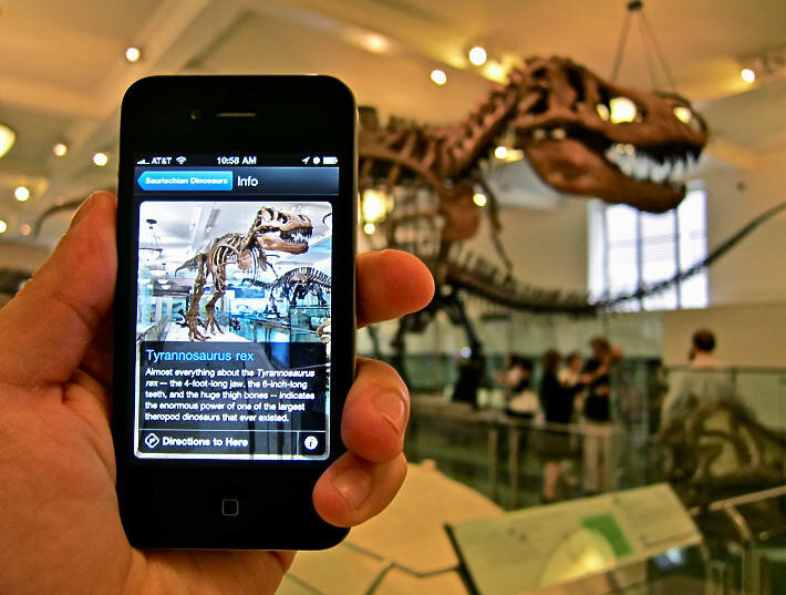 Помните как в фильме "Ночь в музее" с наступлением ночи экспонаты музея оживали? Конечно сюжет фильма является вымышленным, но с появлением новых технологий мы приближаемся к тому, что реальные экспонаты с помощью AR технологий могут оживать. Американский музей естественной истории Некоторым людям посещение музея может показаться скучным занятием, ведь смотреть на скелеты давно вымерших животным не всем в радость. Именно для таких людей музей разработал программу которая на экране смартфона поверх реального изображения накладывает видео и текстовое описание объекта. Музей естественной истории Татарстана Приятно, что мы не отстаем от мировых тенденций и тоже создаем свои музеи с дополненной реальностью. Одним из наглядных примеров является Музей естественной истории расположенный в городе Казань. Компания EligoVision создала инсталляцию с животными которые давно вымерли. Сотрудники музея совместно с художниками-аниматорами и программистами работали над тем, чтобы воссоздаваемые животны
