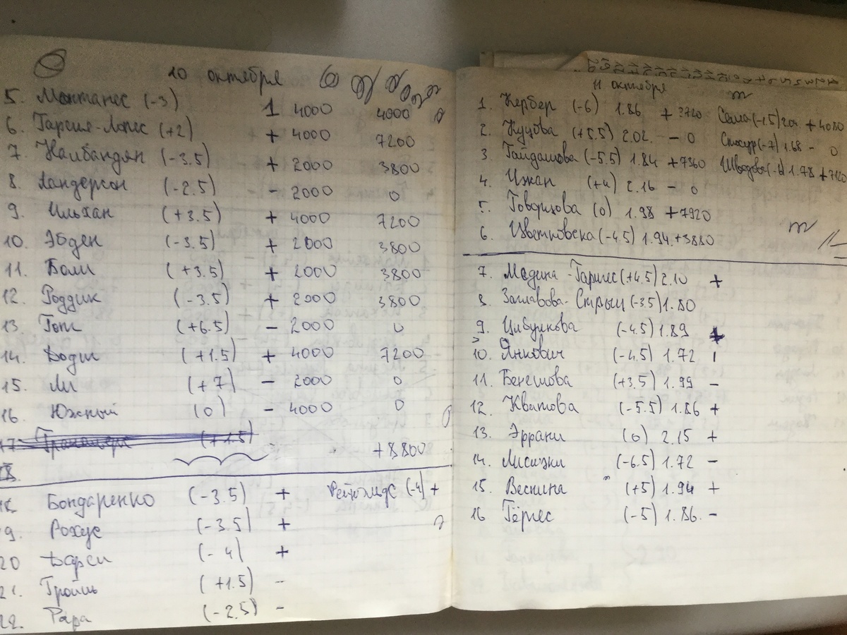 Бокс сегодня с утра выдался просто чумовой. У Ломаченко космическая техника, скорость и физическая подготовка. У Хосе просто напросто железная челюсть ! Два накдауна подряд и в следующем раунде выходит, как ни в чем не бывало. Очень качественные пацаны. Давненько не видел такого высококлассного зарубона. Сейчас можно будет немного вздремнуть и уже затем на вечер выбрать хорошие ставки для увеличения банка. Кстати, недавно совершенно случайно обнаружил свои записи 10 летней давности. В те далекие времена, когда я искал каким образом можно заработать денег в интернете, я наткнулся на букмекерские конторы. Начал разбираться, затем как и все купил несколько договорных матчей, а потом понял, что в этом деле не так уж и просто зарабатывать деньги. Один очень хороший человек, которому я до сих пор благодарен безмерно, посоветовал мне никого не слушать, выбрать вид спорта, который мне большего всего нравится и разобрать его на молекулы. И далее совершенствовать свои знания в одной единс