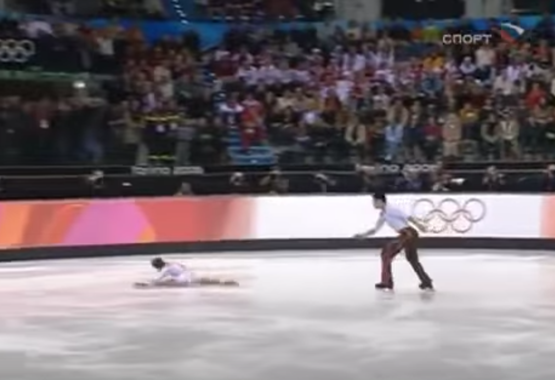 В прошлый раз мы вспоминали самые жесткие падения фигуристов. Фигурное катание очень опасный вид спорта и спортсмены это понимают. Но кажется они готовы на все ради своего любимо дела. Продолжаем вспоминать о самых страшных падениях. Авария Чжан Дан Это случилось в 2006 году на Олимпиаде-2006. Китайская пара начала свое выступление, но после неудачного выброса партнера фигуристка Чжан Дан упала и врезалась в борт. Болевой шок был такой силы, что выступление было решено прервать. Однако спустя несколько минут китайцы сумели прийти в себя и откатать программу до конца, и в итоге даже получили олимпийское серебро. Нашатырь для Дидье Инцидент произошел в Турции на Универсиаде в 2011 году. Французская одиночница Кандис Дидье не смогла чисто исполнить прокат и сильно ударилась. Несмотря на это она сумела завершить выступление и самостоятельно добраться до зоны "kiss and cry". Но тут же упала в обморок. Медбригада приготовилась проводить реанимационные процедуры, но для спасения спортсменк