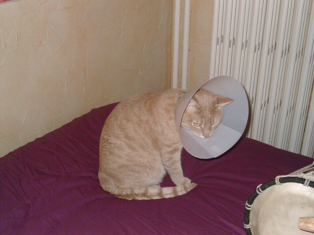 Наш кот Венька сильно приболел, стали появляться залысины, которые кот усиленно расчесывал. Мы сходили с Вениамином в клинику, и нам диагностировали стригущий лишай. Я была возмущена, если честно, думала, что такими заболеваниями могут болеть уличные кошки. Но, как объяснил мне доктор, и с домашними такие вещи случаются не менее регулярно. Так же сказал, что ничего страшного нет, это поправимо и мы вовремя обратились. Прописал нам мазь и сказал приобрести защитный воротник. Ну или самой этот воротник сделать. Как позже выяснилось, это штука такая, на шею кошкам одевается. Очень похоже на рупор. Если честно, я не очень-то хотела это надевать на кота, как по мне это издевательство. Но мера оказалась необходимой: одевать надо было, чтоб кот не слизывал мазь. Пришли домой с Венькой, по пути купили воротничок этот и мазь. Все, как доктор прописал. Одела на кота воротник, помазала пораженные места. Первые несколько часов кот жутко злился, всячески пытался снять воротник. Но в итоге сми