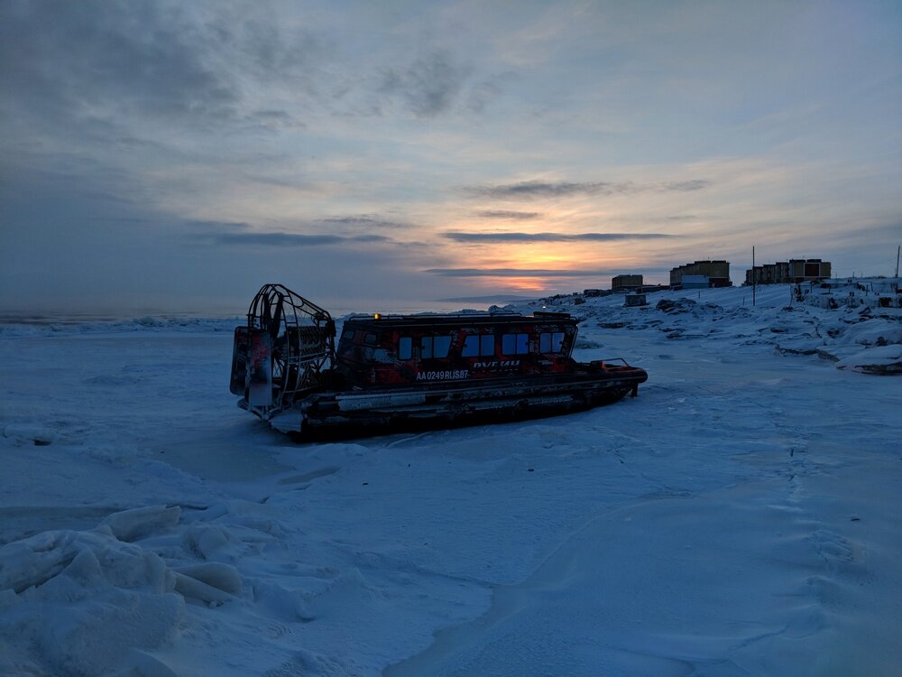 На улице -28 градусов, которые с учётом ветра ощущаются как -41. Бешено ревя мотором, разгоняя волну вперемешку со льдом на припай взбирается аэроглиссер. Аэроглиссер сделали в Красноярске. Всего фирма выпустили 4 экспериментальных модели, 3 из которых сейчас в Анадыре. Как и любое штучное производство, аэролодки "сырые". Дефекты устраняют в процессе эксплуатации. Востребованность подобных транспортных средств на северах большая, не настолько, как в своё время "Трэколов", но где-то рядом. Красноярских частников, как и изготовителей "Трэколов" и схожих моделей, трудно обвинить в рукожопстве, за отсутствием больших инвестиций они развиваются как могут.