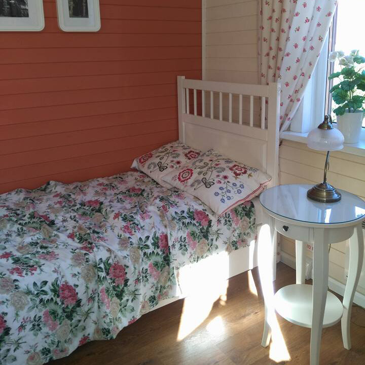 Реальный интерьер. Если вы хотите встретить свою любовь, то с таким спальным местом мужчину вы вряд ли получите. Почему? Во-первых: кровать односпальная, она прямо кричит, что второму человеку тут не место. Во-вторых: доступ к спальному месту тоже с одной стороны, мало для энергий и кровать опять же не приглашает кого-то еще, стойко защищая одиночество хозяйки. В-третьих: само оформление и стиль чисто женский, в таком цветочном решении мужчине будет физически неуютно, меняем флористический текстиль на клетку или полоску. В-четвертых: активный цвет стены в спальне так же лучше изменить на менее яркое решение. Когда мы спим, то лучше в энергии Инь: спокойствие, приглушенные тона. В-пятых: выбираем постеры с парными изображениями, не используйте фото людей, тем более своих бывших партнеров или умерших родственников. Повесьте парное изображение животных, например тех, кто Ваш Цветок персика (кто не знает, будет отдельная публикация). Так же можно поставить на ст