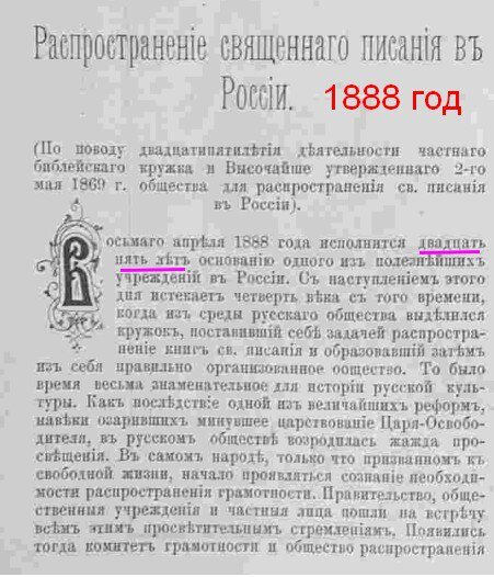 В журнале "Всемирная иллюстрация", том 39 за 1888 год, цензурой пропущено одно место, которое поясняет, под каким названием вводилась библия на Руси. Там описывается "25-летие распространения СВЯЩЕННОГО писания в России". Под "священным писанием" понимается библия, которая сегодня в каноническом изложении РПЦ взята из библии Св. Якова или проще из английской библии под названием ВУЛЬГАТА.