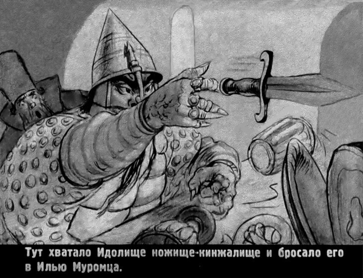 С другими богатырями тоже истории с метанием приключались неоднозначные. Современный сетевой пересказ сюжета "Илья Муромец, Кидрил Обжора и Идолище Поганое" содержит следующий фрагмент: