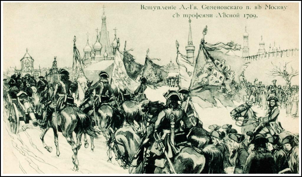 Напомним, Семеновский полк был создан Петром I в 1691 году. Название свое полк получил по месту формирования - подмосковному селу Семеновское. Потешный полк вскоре заматерел в Азовских походах и Северной войне. Семеновский полк дал название целому району Петербурга - Семенцы. Это слобода, где был размещен в новой столице этот полк.