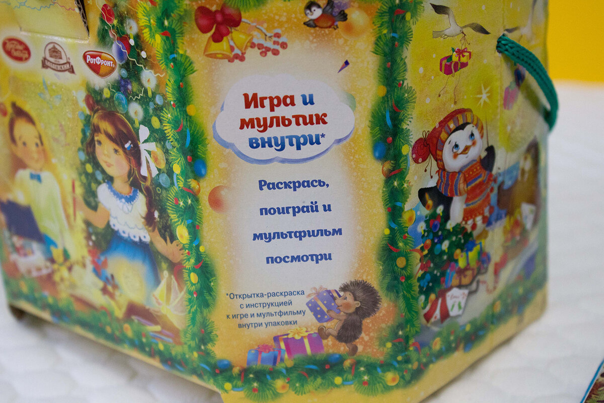Конфеты можно достать в любом количестве, в любое время и любых производителей, но несмотря на это, именно под новогодней ёлкой в красивой коробочке они кажутся какими-то особенными и неповторимыми. Этот год не станет исключением. В этот раз я решил собирать не вручную, а прикупить "Шоколадную шкатулку" - готовый набор весом 700 гр. Главной ее фишкой стало наличие некоего мультфильма-игры, которую, как обещают производители, вложили внутрь. Сам набор обошелся в 516 руб. и, вероятнее всего, присутствие необычного бонуса изменило цену в сторону увеличения. Сегодня я рассмотрю этот самый бонус, ради которого, возможно, кто-то выберет именно этот набор. На дне коробки, под мешком со сладостями, лежит открытка, завернутая в пакетик. На обороте имеется небольшая инструкция, согласно которой потребуется скачать и установить приложение. Для входа в игру понадобится ввести код активации, который содержится в инструкции. Без него приложение не запустить. Нажав кнопку "Старт", сканируете камерой