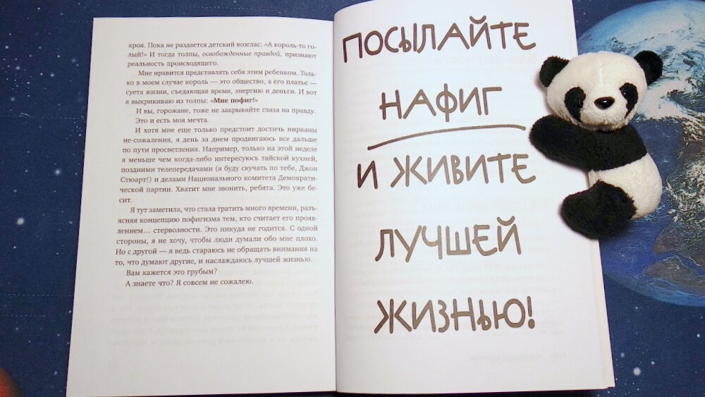 В общем, подытожу: книга читается легко, мотивации однозначно присутствуют, есть о чем поразмыслить. Безусловно, вы после её прочтения не станете мгновенным пофигистом и вряд ли проснётесь на следующее утро безумно свободным и счастливым человеком, но на многие вещи после прочтения точно взглянете иначе и не будете жить, оглядываясь на чужое мнение. Просто перестанете париться по мелочам и заморачиваться о ненужном.