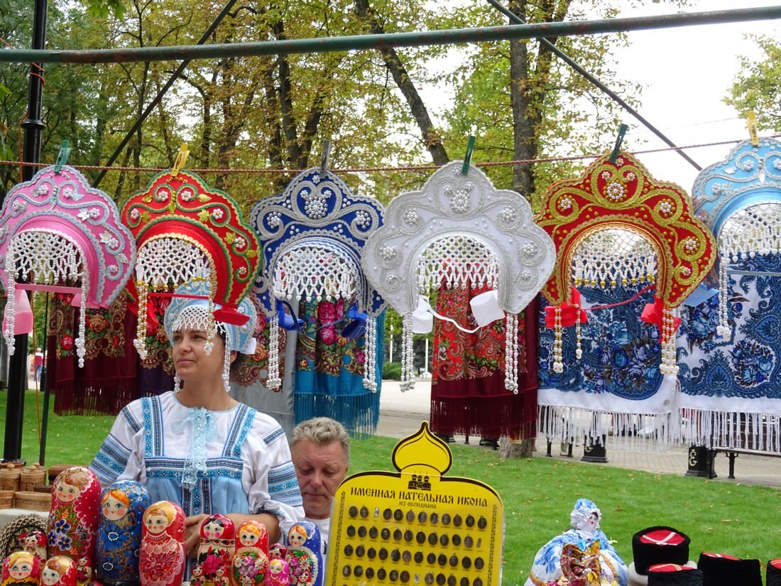 Посещая Краснодар, каждый гость стремится увезти с собой не только яркие воспоминания, но и, как правило, какой-нибудь сувенир на память. Такая возможность представляется как для горожан, так и гостей кубанской столицы каждые праздничные дни. На ярмарках мастера со всего края показывают лучшую продукцию декоративно-прикладного искусства. Всюду стояли прилавки с товарами, проходили мастер-классы как для детей, так и для взрослых. Желающие могли сделать себе аквагрим и предстать перед многочисленными зрителями в образе сказочных героев. Детишкам очень нравилось повышенное внимание любознательных гостей ярмарки. Они сидели тихо и ожидали окончания этого таинственного действа. Сегодня аквагрим — разрисовка лица специальными, безопасными красками стал очень популярным среди молодёжи. Прямо на наших глазах на лицах малышей появлялись фантастические мордочки любимых персонажей и изумительные орнаменты. Некоторые взрослые были и сами не прочь нанести такой яркий аквагрим, а потом весь день ход