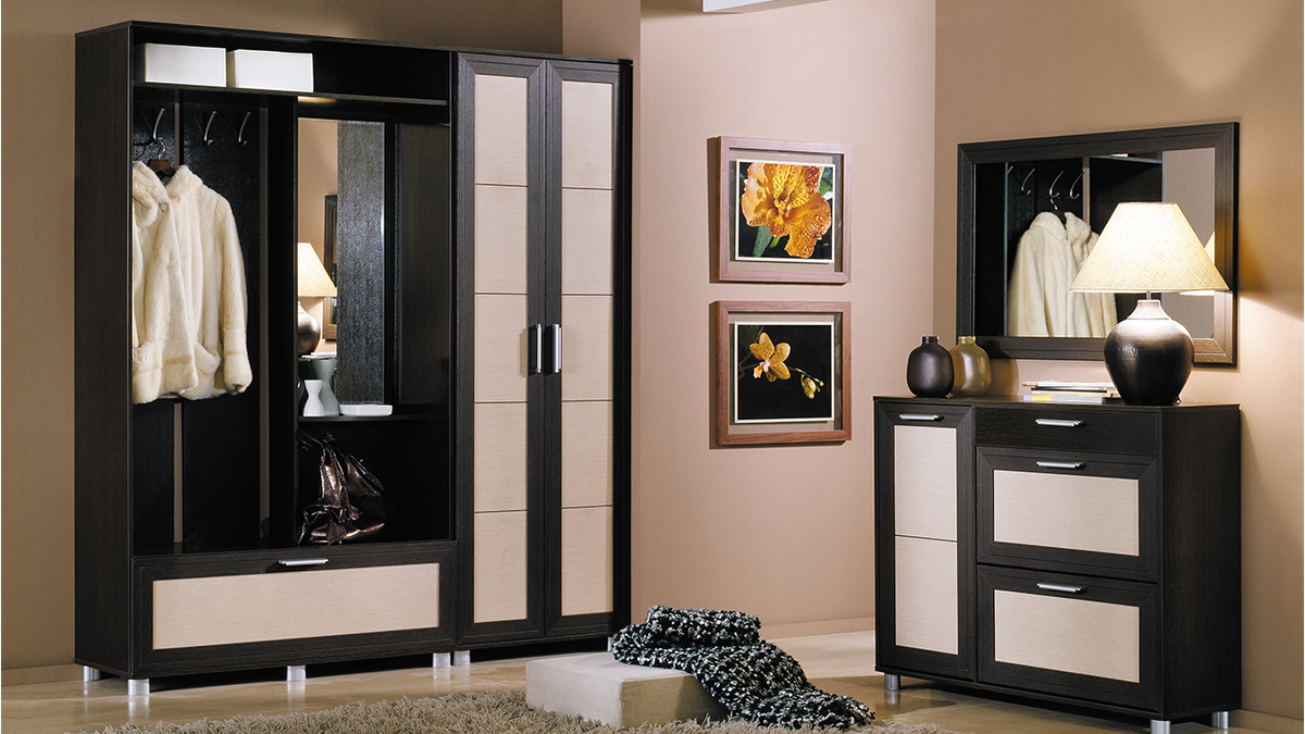 - симпатичный коврик у входной двери сделают переднюю комнату уютнее. А теперь детально обсудим варианты мебели для прихожей.