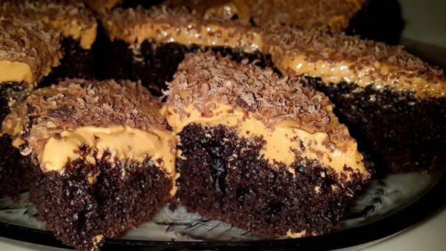 Шоколад чёрный – 1 плитка (100 гр.) Красивый, вкусный и необычный бисквитный торт «Каракум». Приготовление торта «Каракум»: Готовлю бисквит. В большой миске смешиваю: яйца и сахар взбиваю миксером как можно дольше, добавляю ванильный сахар, сливочное масло или маргарин, какао, кислое молоко или кефир, соду, гашенную уксусом и муку. Теста получается много, поэтому лучше его выпекать в широкой форме. Я пробовала выпечь бисквит в круглой форме диаметром 26 см, получился очень высокий корж и время выпечки увеличилось вместо 20 минут до 60 минут при температуре 180 градусов. Готовлю крем. 2 банки варёной сгущёнки и 300 гр. сливочного масла хорошо взбиваю, добавляю 1 столовую ложку растворимого кофе, 1 столовую ложку коньяка и ванильный сахар. Собираю торт в форме со съёмным бортом. Если корж получается высоким, то лучше его разрезать пополам вдоль и пропитать кремом как внутри, так и снаружи. А если не очень высокий, но широкий, то достаточно крем нанести только сверху. На готовый бискви