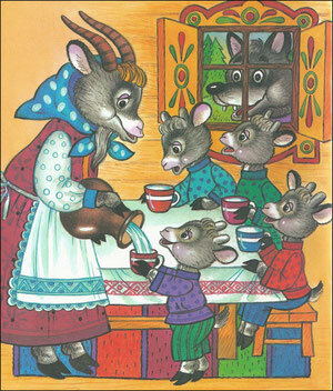 ВОЛК И СЕМЕРО КОЗЛЯТ При копировании и размещении на другом сайте указывайте активную ссылку: https://www.detiam.com/библиотечка/ Жила-была в избушке в лесу коза с козлятками. Коза часто уходила в лес искать корм, а козлятам наказывала: "Дверь никому не открывайте, по лесу бродит злой голодный волк". Воротится коза, постучится в дверь и запоёт: Козлятушки, ребятушки! Отопритеся, отворитеся! Ваша мать пришла, Молока принесла. Козлятки тотчас отопрут дверь и пустят мать. Она покормит их и опять уйдёт в лес. Волк всё это подслушал, и только коза ушла в лес, подошёл к избушке и запел: Козлятушки, ребятушки! Отопритеся, отворитеся! Ваша мать пришла, Молока принесла. А козлятки отвечают: "Слышим, слышим - не матушкин голосок! Наша матушка поёт тонким голоском. Уходи, волк, прочь". Воротилась коза, постучалась в дверь и запела: Козлятушки, ребятушки! Отопритеся, отворитеся! Ваша мать пришла, Молока принесла. Козлятки открыли дверь, в