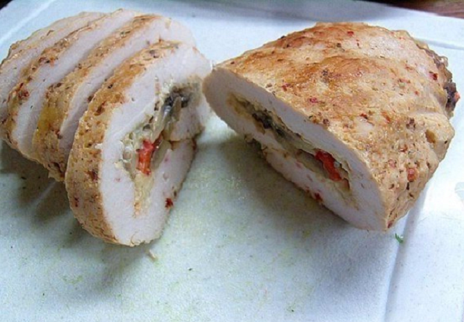 Простое и вкусное блюдо! Выглядит очень даже красиво, а если украсить зеленью и помидорками или красным болгарским перцем, получится и вовсе нарядно. Так что такие рулетики можно смело готовить не только на каждый день, но и к праздничному столу. Нарезать их лучше всего в холодном виде, при этом нож должен быть хорошо наточен. А если вы приготовите рулеты просто на ужин или на обед, то подавайте их прямо в фольге и горячими. Вкусно будет и так и так, но в горячем виде рулетики особенно сочные и вкусные! Нам понадобится: парочка целых куриных филе (около килограмма) большая луковица 300 грамм шампиньонов грамм 150 твердого сыра болгарский перчик красного цвета 2-3 столовых ложки майонеза по чайной ложечке аджики, горчицы и хрена небольшой кусочек сливочного масла соль, перец - по вкусу. Кстати, о вкусной и здоровой еде еще можно прочитать здесь: Вкусный ужин из духовки - треска под сырной шубой Сочные ленивые голубцы - готовим на сковороде "Розовые свинки" - оригинальная закуска на