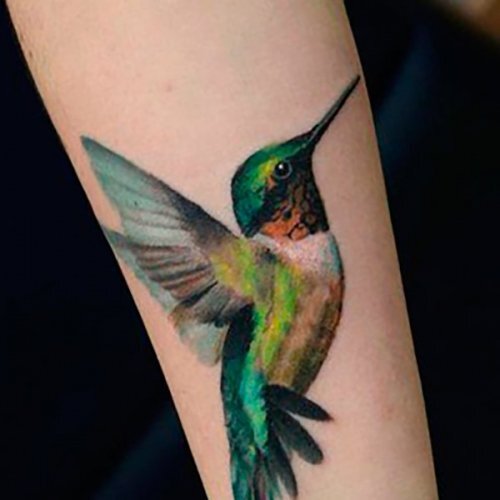 Колибри делают маленькими, жар-птиц — большими. Первые обычно цветастые, вторые — жёлто-оранжевые или из чёрного контура. Две противоположности, которые выглядят интересно в любом стиле, и мы расскажем об обеих. ЗНАЧЕНИЯ ТАТУ КОЛИБРИ Самая маленькая птичка на планете — некоторые виды колибри размером не больше шести сантиметров и весом полтора-два грамма. Это единственные птицы, умеющие летать назад. Они подвижные, манёвренные и очень быстрые, поэтому основные значения тату с колибри — свобода, скорость, энергия. В племенах майя из перьев колибри готовили любовные зелья, поэтому иногда татуировка с этой птицей означает любовь — и у тех, кто её нашёл, и у тех, кто только в поисках. «Сейчас обычно человек сам себе выбирает значение. Ему или ей может просто нравиться колибри, никто не запрещает. Мы даже не советуем опираться на смысл — можно просто увидеть интересную картинку в интернете и сделать её»