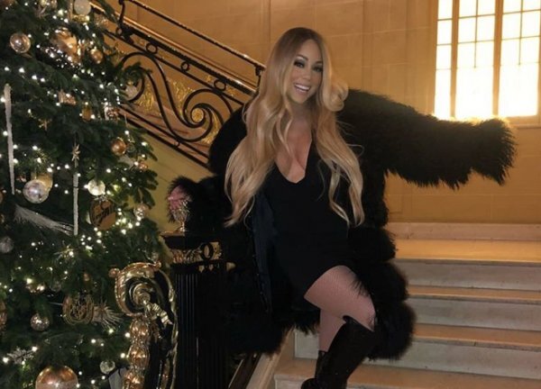 Селеста нашла откровенный рождественский снимок американской певицы, на котором та позирует на фоне огромной елки в сапогах, нижнем белье и спущенной с плеч рубашке. Мэрайя выглядит просто Дюймовочкой на фоне гигантского рождественского дерева, а австралийка решили сделать все наоборот.