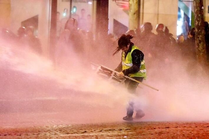 Во Франции полицейские применили слезоточивый газ и водометы, чтобы разогнать несколько сотен протестующих «желтых жилетов». Об этом 22 декабря сообщает телеканал BFM TV. Ситуация обострилась после того, как несколько демонстрантов напали на стражей порядка. Уточняется, что сотрудникам местных ресторанов пришлось срочно разбирать веранды. Туристы и горожане, пришедшие на Елисейские Поля за покупками, были вынуждены срочно покинуть район. Ранее 22 декабря сообщалось, что во Франции началась шестая протестная акция «желтых жилетов». Безопасность в этот день обеспечивают 4 тыс. стражей порядка, 1225 из них работают в Париже. Участие в субботних демонстрациях принимают около 24 тыс. человек. При этом в Париже на манифестацию вышло приблизительно 2 тыс. активистов, 109 человек задержаны, еще семерых поместили под стражу. Демонстрации проходят также в Лионе, Тулузе, Орлеане, Бретани и других городах страны. В декабре президент страны Эммануэль Макрон ввел во Франции чрезвычайное экономическ