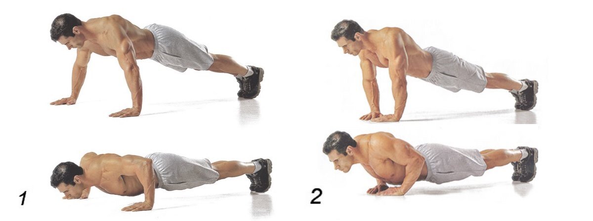 1. Начнем со спины и груди Лягте на пол и расставьте ноги на ширине плеч, поднимитесь на кулаки расположив ладони именно так как на картинке №1, таким образом сделайте 3 подхода.
