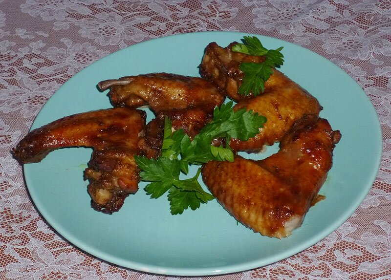 Куриные крылышки – продукт, который требует обязательного маринования. Только в этом случае можно получить вкусное блюдо. Маринование компенсирует небольшое количество мяса на крылышках: немного, но очень вкусно. Время приготовления – 45 минут. Количество порций – 1. Ингредиенты Для приготовления возьмем: · куриные крылышки – 4 шт.; · чеснок – 20 г; · соевый соус – 3 ст.л.; · карри – 1 ч.л.; · паприка сладкая – 1 ч.л.; · масло растительное – 1 ст.л. Способ приготовления Рецепт приготовления куриных крылышек в соевом соусе с чесноком: 1. Чеснок очищаем и протираем в пюре. Добавляем к крылышкам. 2. Добавляем специи. Количество специй весьма условно, поэтому варьируем количество карри и паприки на свой вкус. 3. Хорошо промазываем специями крылышки. 4. Вливаем соевый соус. Еще раз промазываем крылышки и, закрыв емкость, в которой будет проходить маринование, отправляем ее в холодильник. Маринование должно длиться не менее 30 минут. Для более насыщенного вкуса оставляем на ночь. Я мариновал