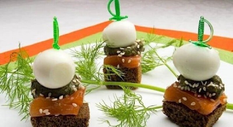 Канапе с перепелиными яйцами на праздничный стол – очень вкусная, аппетитная закуска из небольших бутербродов, готовится легко, просто и быстро. Состав: Приготовление: Шаг 1: Яйца отварить вкрутую, охладить в холодной воде и очистить. Шаг 2: Тем временем хлеб подсушить на сухой сковороде или в духовке, остудить. Приятного аппетита!