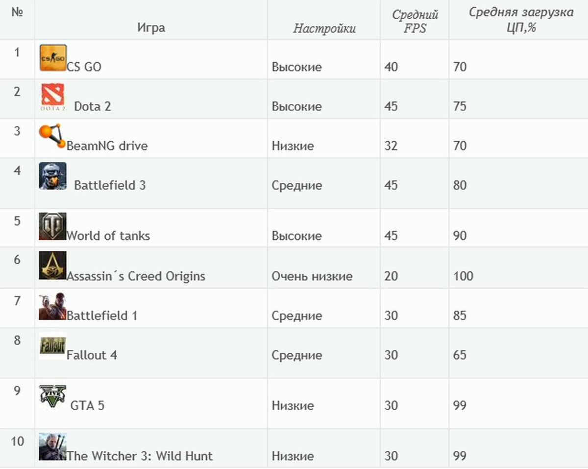 В данном видео приводятся тесты в 10 играх