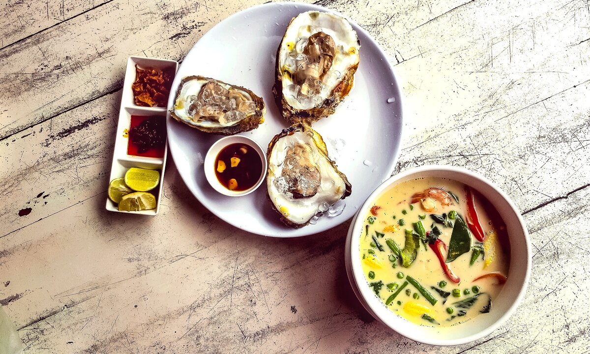 Вообще-то для тайцев это и не суп, а соус, но туристы едят его как суп. Это аналог нашей солянки, туда кладут все, что есть в доме. Он одновременно сладкий, кислый, соленый и острый. Неизменными составляющими Том-Яма являются корень галанга, лимонное сорго, лист каффирского лайма и креветочная паста. Остальное дело вкуса и фантазии повара. Не менее популярное блюдо - салат Пад-Тай.