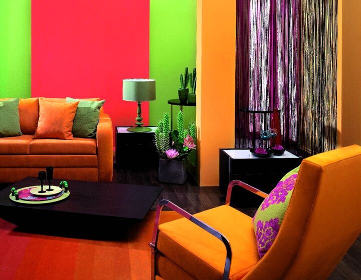 О сочетании цвета много написано, да не всё в этом деле просто и правдиво. Дело вот в чем... Если вам знакомы правила сочетания по цветовому кругу, то вам, наверняка известен принцип сочетания по противоположным цветам: Это цветовой круг Иттена. Цвета расположенные напротив друг друга во внешнем круге — являются максимально контрастными. Так, например, для жёлтого цвета противоположным контрастом будет фиолетовый цвет. Эти же цвета называют, одновременно, гармоничными, по принципу сочетания дополнительных цветов. Так как, если противоположные цвета смешать, то они дают чистый черный или серый цвет. Исходя из этого, мы часто наблюдаем интерьеры пестрящие разными цветами, которые построенные на правилам контрастных цветовых сочетаний: Но… Даже на первый взгляд, такой интерьер гармоничным не назовёшь. Так в чем же дело? Может с правилами что-то напутали? А дело — в неверном понимании сути: для чего сочетать контрастные цвета? Контраст служит не для того, чтобы цвет красиво присутств