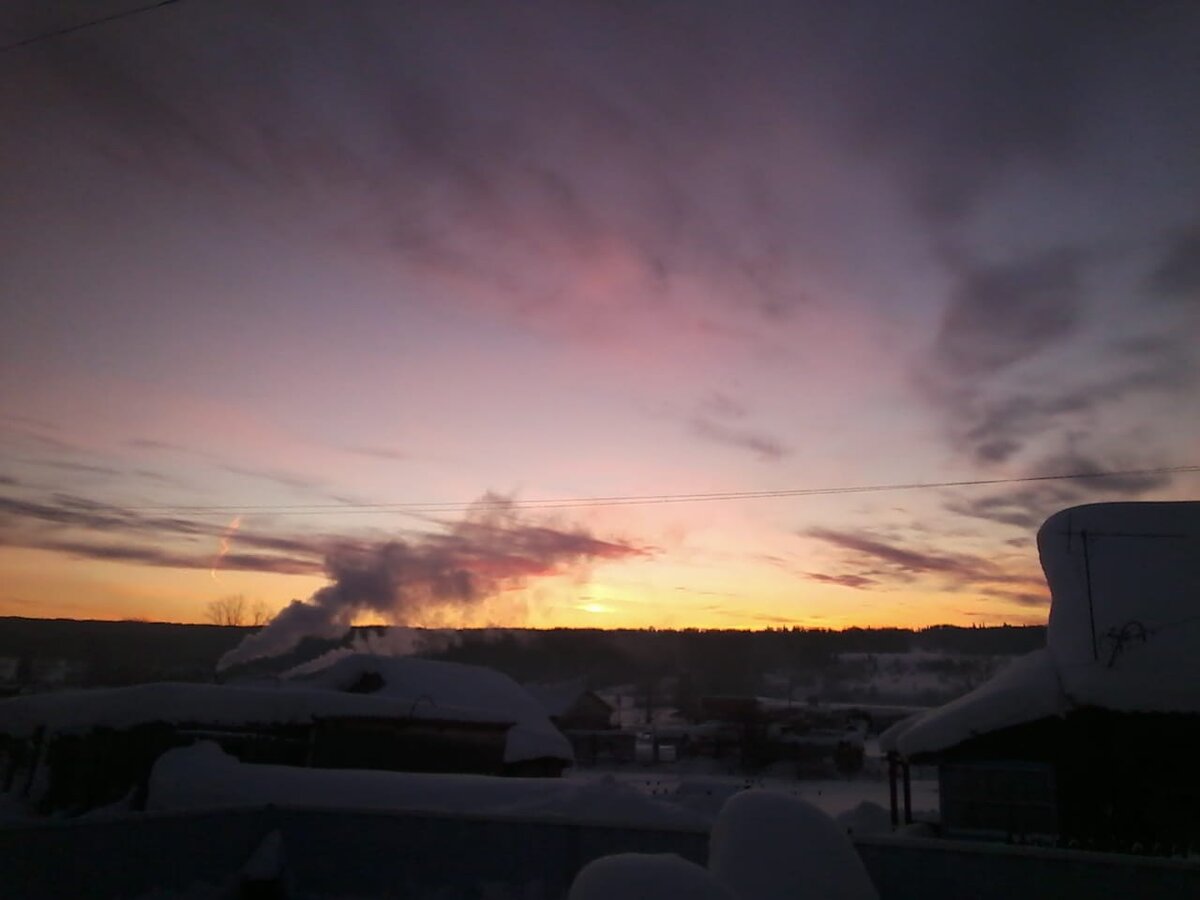 Вчера вечером живность устроила охоту на мышей. Две наших кошки и собака сели вместе рядом с щелью в полу. Кошки внимательно сидели и слушали шорох, а Нэсти, так зовут нашу собаку, дышала своим носом в эту щель, как будто пыталась выдуть мышь из под пола, так смешно это выглядело) Поймана мышь была нашей Люсей, когда я уже лежала в кровати, она всегда ловит их дома, хотя днем поймала Багира. Давно же никто ничего у нас не ловил, я уже подумала мыши нас покинули. Но видимо нет) С утра пыталась фотографировать рассвет, несколько раз выбегала, так быстро он менялся, очень красивые, розовые облака, фотоаппаратом всё не передать, а телефоном тем более. Сегодня когда девчонки ушли, Аделька спать не хотела, зато подоспела помощь, прокотролировать, чтобы я затопила баню, и вода опять в баках не замерзла. Отчет: Баня и столярка благополучно растоплены) Сегодня меня окутали тёплые мысли о предстоящем приезде мужа, моей подруги, и конечно же гостинцев от мамы и друзей!! Как приятна эта забота