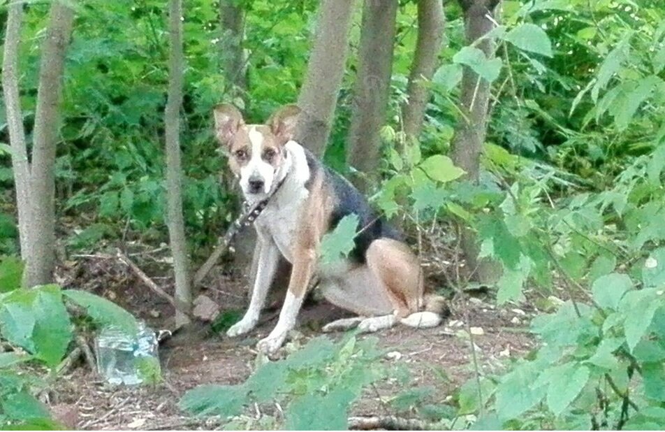 Во время ежедневных прогулок с Машкой ( историю ее появления у меня можно прочесть здесь) мы бродили по огромному Битцевскому парку, порой забредая в самые отдаленные и глухие уголки этого лесного массива. И несколько раз натыкались на брошенных псин, прибившихся к стаям бездомных собак. Породистые собаки с ошейником, но грязные и исхудалые бежали в компании дворняг и всевозможных метисов, принявших их в свою стаю. Жалко было этих бывших домашних питомцев, но, по крайней мере, они отыскали для себя новую компанию и какое-никакое пропитание (стая всегда найдет, чем поживиться). Но вот чего я никогда не мог понять-это как можно отвести свою собаку далеко в лес и оставить ее на почти 100% гибель, привязав к дереву? Два раза я натыкался на таких бедолаг глубоко в лесу. Для первой ее бывший хозяин хотя бы оставил миску с водой рядом с деревом. Бедняга спаниель вылизал ее досуха и страдал от голода и жажды, когда мы с Машкой наткнулись на него. Он даже не скулил, молча лежал около миски , т