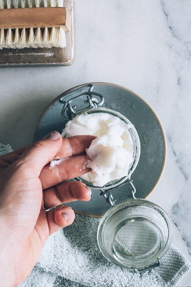 1) Растопить масло ши и кокосовое масло на водяной бане.