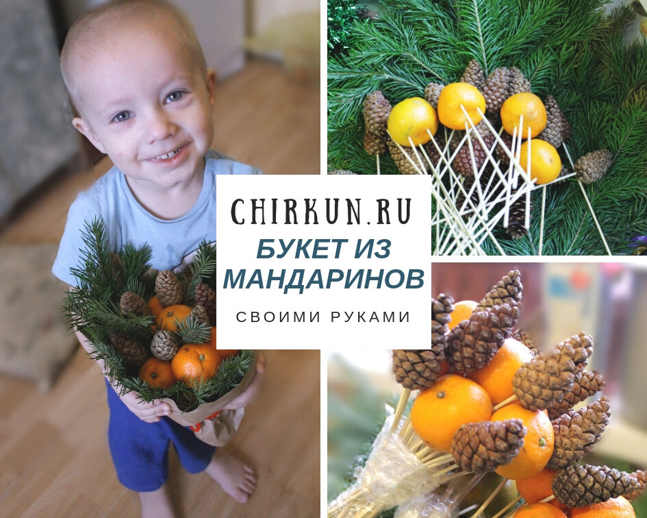 Я уже выкладывала у себя мастер-класс с подобным букетом. Пришло время хвои и мандаринов. Для изготовления букета нам потребуются: Сначала мы накалываем мандарины на палочки как минимум в 3 местах. Вот так: Затем шилом проделываем дырочки в шишках и тоже нанизываем их на палочки. Тут хватит и 1 палочки на 1 шишку. Разумеется, шишки можно отбелить или припорошить их "снегом". Если шишек в хозяйстве нет, можно купить уже готовые в фикс-прайсе. Но их в упаковке всего 5 штук. Экономнее, конечно, делать из своих лесных трофеев. Начинаем составлять букет. Добавляем еловые палочки. Сматываем скотчем, его не жалеем. Все должно держаться очень крепко. Затем подрезаем кончики, чтобы они были одной длины, ровненькие. Заворачиваем в упаковочную бумагу. Я не профи. Но у меня всегда в хозяйстве есть рулон "крафтовой", серой бумаги для упаковки и грубая бечевка из фикс-прайс. Букет готов, можно дарить. Не сильно сложный и многодельный. Под силу любому, даже новичку. Да и с ребенком можно сделать