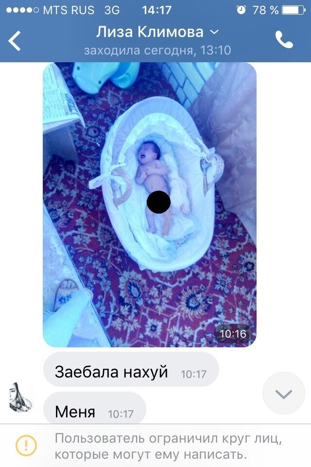 Случай произошел в Балаково. Местная жительница вынесла люльку со своей трехмесячной дочерью на балкон. Об этом сообщил ее бывший муж Александр Потрясов, который ушел из семьи, после чего женщина начала делать странные вещи и распространять про него различные сплетни. Вот, что он добавил: "Уважаемые люди, все кто видел информацию про меня - это все ложь! У моей жены после родовой психический синдром. У неё же даже доказательств нет, так как это не правда, что она писала про меня. вот что она сделала со своим ребёнком все на фотографии,когда она маленькая моя доченька плакала ,а я в это время был на работе, можете сверить даты отправления даже!" После этого в разговоре с журналистами он пояснил, что переживает за дочь, но сам ее содержать не может, так как много работает: "Да, сейчас мы не живем вместе, но я постоянно думаю о дочери. Думаю, как она без меня? Лучше лишить мать прав на ребенка, чем постоянно думать: "А не заморозит ли она ребенка на балконе и не выбросит ли на улицу?"