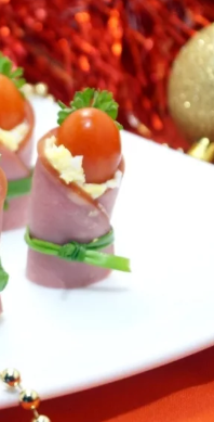 Оригинальная закуска, которая делается за считанные минуты, и , конечно же, производит только положительный эффект. Яйца отвариваем до состояния крутого и натираем на тёрке вместе с сыром и чесноком. Всё тщательно смешиваем с майонезом, чтобы чеснок равномерно распределился. К нему же добавляем оливки, мелко порубленный ножом. Ветчину либо заранее покупайте нарезанную либо сами, но очень тонко. На середину кружочка выкладываем начинку и сворачиваем, завязывая луком. Это будет как халат султана, а шапочкой будет наш помидор. Закуска готова, осталось красиво расставить на тарелке и преподнести к столу. Приятного аппетита!