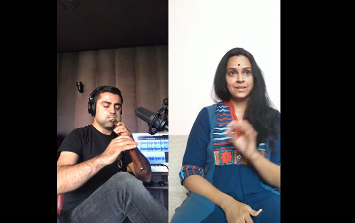 Гапоян играет на дудуке, а его коллега из Индии поет песню на индийском. Если не пытаться понять слова, а лишь наслаждаться сочетанием голоса и дудука, то можно принять композицию за шалахо.