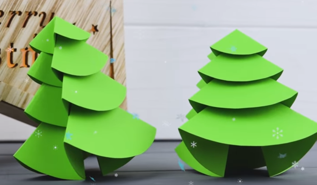 Приветствую вас, дорогие друзья. Спасибо, что заглянули на мой канал. У меня для вас сегодня очень простая идея елки из бумаги. Ее можно использовать в качестве елочной игрушки, украшения вашей открытки, а также отдельно стоящего украшения. Итак, для изготовления ёлочки нам понадобится: лист бумаги, линейка, ножницы, циркуль и клей. Ёлка будет состоять из 4 частей, поэтому нам необходимо 4 ровные фигуры, это будет круг разного диаметра. Следующий круг радиусом 4 см, то есть уменьшаем на 1 сантиметр далее 3 см и самый последний 2 см. Сначала складываем пополам. Затем с другой стороны пополам и теперь вот таким вот образом пополам. Чтобы линии совпали. И по последним проведенным линиям складываем их вовнутрь. Берем следующей круг и повторяем то же самое. когда все фигурки готовы, начинаем собирать их вместе. Начнем с верхушки, возьмем фигурку которая по диаметру была 3 см и наносим клей на верхушку. Клей наносим на изогнутые внутренние части. И сажаем сверху самую маленькую ча