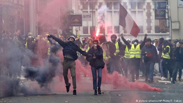 Реальные массовые протесты во Франции начались не в середине ноября, когда появились «желтые жилеты». Протестное движение началось еще весной, когда начались забастовки госслужащих. И первыми были железнодорожники. Они протестовали против приватизации транспорта, сокращения социальных программ. К ним присоединились служащие локальных транспортных компаний, в частности парижского метрополитена, за тем учителя, энергетики, медики. Последние возмущались и тем, что правительство ежегодно сокращает расходы на медицину, в частности на службы скорой помощи, где категорически не хватает персонала, что ведет к трагическим случаям, когда скорая просто не успевает вовремя приехать и спасти человека с благоприятным прогнозом. Забастовали служащие Air France. Начали забастовку даже юристы – адвокаты и судьи, выступающие против электронного документооборота в юриспруденции, что навязывает им правительство.