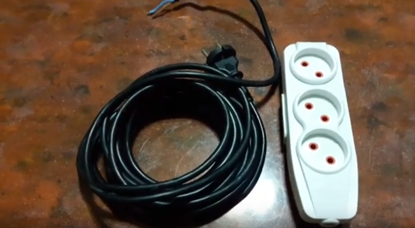 Сегодня будем делать удлинитель. Сделать удлинитель довольно просто. У меня есть длинный шнур с вилкой, он остался от пылесоса. Если у вас провод без вилки, то это не проблема, её можно купить в любом хозяйственном магазине. Я купил наружную розетку. Провод у меня двухжильный - 2 жилы сечением 1 мм. Розетку я взял без заземляющих контактов, потому как если провод двужильный, то сделать удлинитель с заземлением не получится. Такой удлинитель подойдет для техники, которая не требует заземления или же для использования в тех домах, где заземление не сделано. Вот, к примеру, заводской удлинитель с 3 жильным проводом Для самодельного удлинителя нужно брать не просто наружную розетку, а ту которая предусмотрена для того, чтобы из нее можно было сделать удлинитель. Так же видим здесь клеммник с болтами. Болтами зажимаются контакты проводов розетки, которые рассчитаны под пайку, то есть провода придется припаивать, но это неудобно, легче зажать просто болты в клеммнике. Важный мо