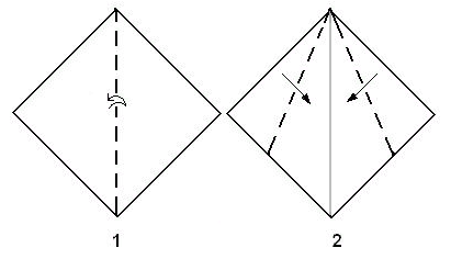 Узнайте, как сделать простое оригами "лебедь",создание которого занимает менее 10 шагов: 1 Начните с квадратного листа бумаги. Сложите пополам по диагонали. Разложите. 2 Согните левый и правый края бумаги в соответствии с центральной складкой, сделанной выше. 3 Переверните бумагу и повторите: согните левый и правый края в соответствии с центральной складкой. 4 Согните модель пополам так, чтобы острая точка встречалась с углом на противоположной стороне (выровняйте красные точки).