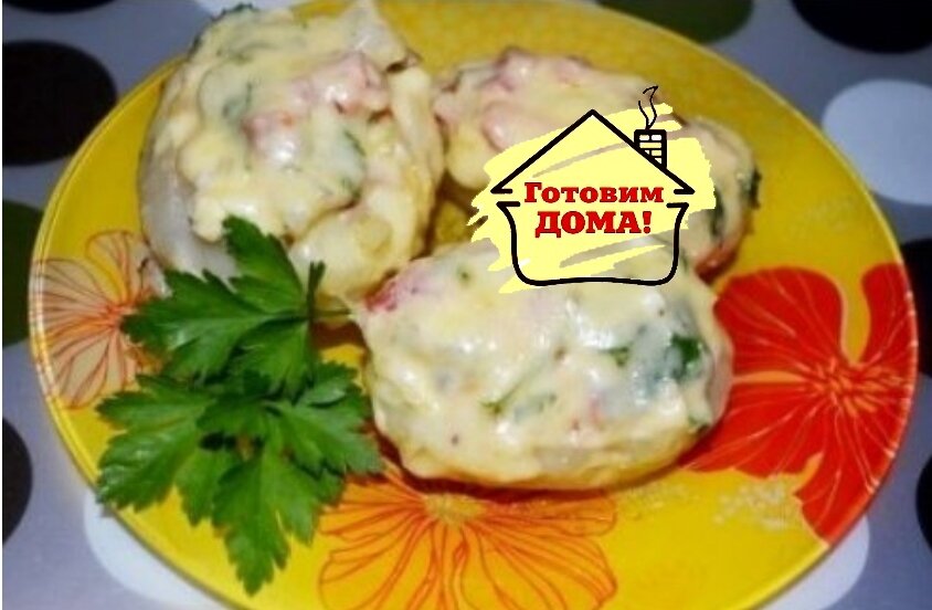 За это время приготовился наш картофель.Его необходимо остудить. Каждую картофелину разрезаем пополам и аккуратно чайной ложкой удаляем серединку, половинки делаем похожими на лодочку.