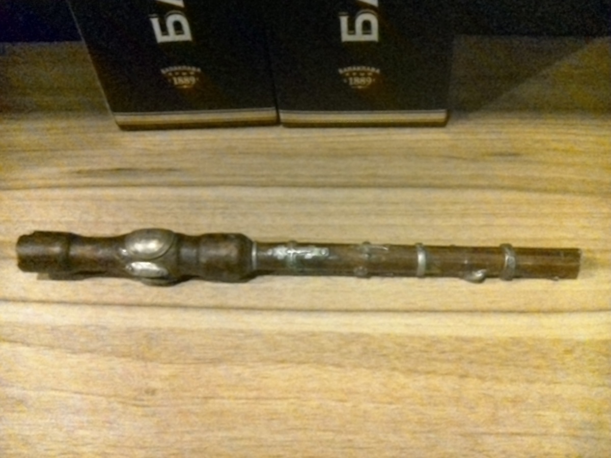 Вот такое рукоблудие мне принесли. Палочка "Гари Поттера" ! Она усеяна серебряными изделиями (крестами и кольцами), украшена посеребряными накладками, военноморской пряжкой и французской пехотной пуговицей. Срез. Кончик. Имеет на рукояти выемку и отверстие в тыльной части. Сама палка фрагмент какой-то части мебели - декоративной решётки кровати или трильяжа. 17 пехотный французский полк! - Пуговица периода Крымской войны 1854-1856 годов. По серебряная царская накладка (бронза в посеребрении). Фрагмент пряжки с разгрузки офицерского военно-морского кортика - якорь! Вторая по серебряная накладка. Вторая выемка по окончанию рукояти. Переход рукояти в продольную часть. Кольцо и крест из серебра. Способ крепления гвоздями. Изделия все серебряные и по серебряные накладки, пуговица выгнуты по конус палочки. Про ворот! Кресты и колечки! Про ворот! Кольца! Кольца и листочек от серёжки! Про ворот! Про ворот! Кольца и дельфинчик! Крест! Голова с плавниками дельфинчика! Дельфинчик - это кольцо и